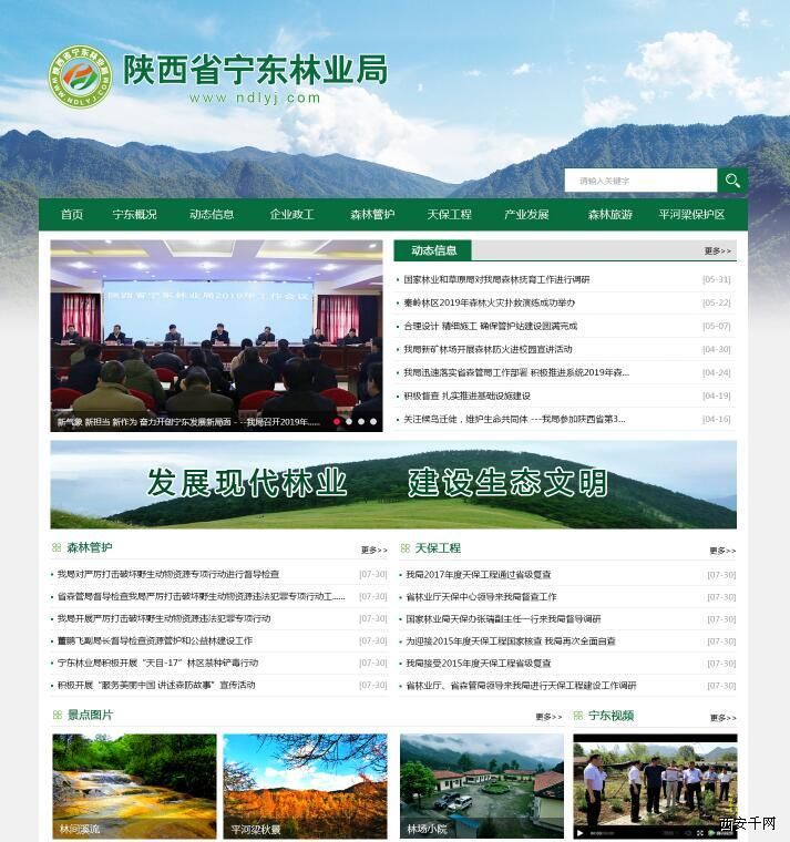 陜西省寧東林業(yè)局始建于1958年,是省屬六大采育企業(yè)之一,陜西省寧東林業(yè)局位于秦嶺南麓的寧陜縣境內(nèi),北以秦嶺為界與戶縣、長安毗鄰,西與寧陜縣兩河鄉(xiāng)和寧西林業(yè)局相接,東鄰鎮(zhèn)安、柞水、安康,南與寧陜縣的關(guān)口、賈營、龍王區(qū)接壤,轄區(qū)內(nèi)涉及寧陜縣16個鄉(xiāng)鎮(zhèn)73個自然村。地理坐標介于東經(jīng)108°16′16″——108 °56′43″ ,北緯 33 °14′26 ″——30 °50′32″之間。 寧東林業(yè)局所處的秦嶺山脈是長江、黃河水系的分水嶺和南北氣候分異的天然屏障,境內(nèi)地形復(fù)雜多變,山高谷深,層巒疊嶂,秦嶺主梁橫亙北界,月河梁、平河梁橫貫其中,最高海拔2964.6 米,最低海拔598米,相對高差2370多米。境內(nèi)水力資源豐富,主要河流洵河、池河、長安河屬長江水系的漢江支流源頭。氣候?qū)賮啛釒降貧夂?,過渡性和垂直變化明顯,四季分明,濕潤多雨,氣候溫和,優(yōu)越的自然條件使寧東轄區(qū)森林茂密,動植物種類繁多。林區(qū)內(nèi)有種子植物124科,458屬,1235種,分別占秦嶺種子植物、屬、種總數(shù)的78.5% 、 50.9% 和42.1%。有國家重點保護植物19種,其中一級保護植物紅豆杉,二級保護植物大果青扦、秦嶺冷杉杜仲等18種。林區(qū)內(nèi)有野生脊椎動物273中,有國家一級保護動物如大熊貓、金絲猴、羚、金雕、林麝、豹共6種,二級重點保護動物22種。真可謂是資源豐富物種繁多的“大自然博物館”。