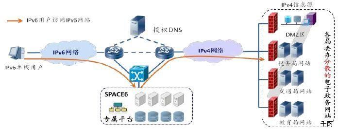 SPACE6是一種網(wǎng)絡(luò)層協(xié)議轉(zhuǎn)換技術(shù)和應(yīng)用層協(xié)議翻譯技術(shù)相融合的全新技術(shù),能把單棧IPv4網(wǎng)站或單棧IPv6網(wǎng)站的內(nèi)容自動(dòng)發(fā)布到IPv4和IPv6兩個(gè)網(wǎng)絡(luò)平面,從而快速實(shí)現(xiàn)網(wǎng)站的雙?;?jí),而且部署靈活,與物理位置無關(guān),網(wǎng)站只需要在其授權(quán)DNS上增加一條相應(yīng)的AAAA記錄即可。還有SPACE6技術(shù)還能解決網(wǎng)站中由于外鏈導(dǎo)致的內(nèi)容缺失等問題("天窗"問題),較其它轉(zhuǎn)換技術(shù)具有更佳的用戶體驗(yàn)。