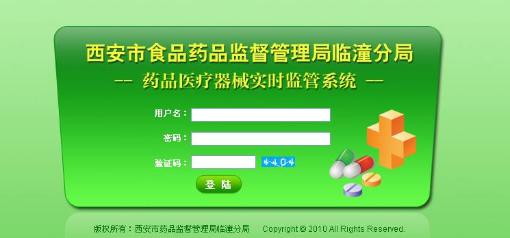西安市藥監(jiān)局臨潼分局藥品醫(yī)療器械實(shí)時監(jiān)管系統(tǒng)登陸界面: