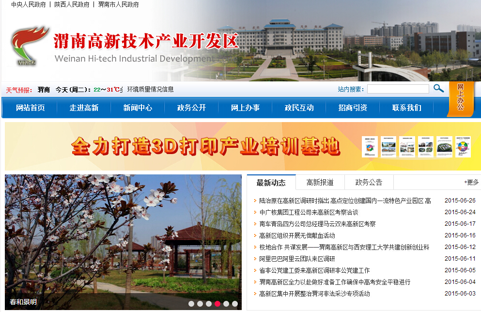 陜西省人民政府1988年批準(zhǔn)設(shè)立渭南經(jīng)濟(jì)開(kāi)發(fā)區(qū),1992年又批準(zhǔn)設(shè)立渭南高新技術(shù)產(chǎn)業(yè)開(kāi)發(fā)試驗(yàn)區(qū),2010年9月26日經(jīng)國(guó)務(wù)院批準(zhǔn),正式升級(jí)為國(guó)家級(jí)高新技術(shù)產(chǎn)業(yè)開(kāi)發(fā)區(qū)。渭南高新區(qū)是國(guó)家關(guān)中高新技術(shù)產(chǎn)業(yè)開(kāi)發(fā)帶的重要組成部分,是渭南市對(duì)外開(kāi)放的窗口,是渭南科技創(chuàng)新和體制創(chuàng)新的基地和實(shí)驗(yàn)區(qū)。轄區(qū)面積49平方公里,規(guī)劃控制面積31平方公里,轄3個(gè)街道辦事處,區(qū)內(nèi)總?cè)丝诮?萬(wàn)人。渭南高新區(qū)位于秦、晉、豫黃河金三角腹地,是中原通往西南、西北的必經(jīng)之地。